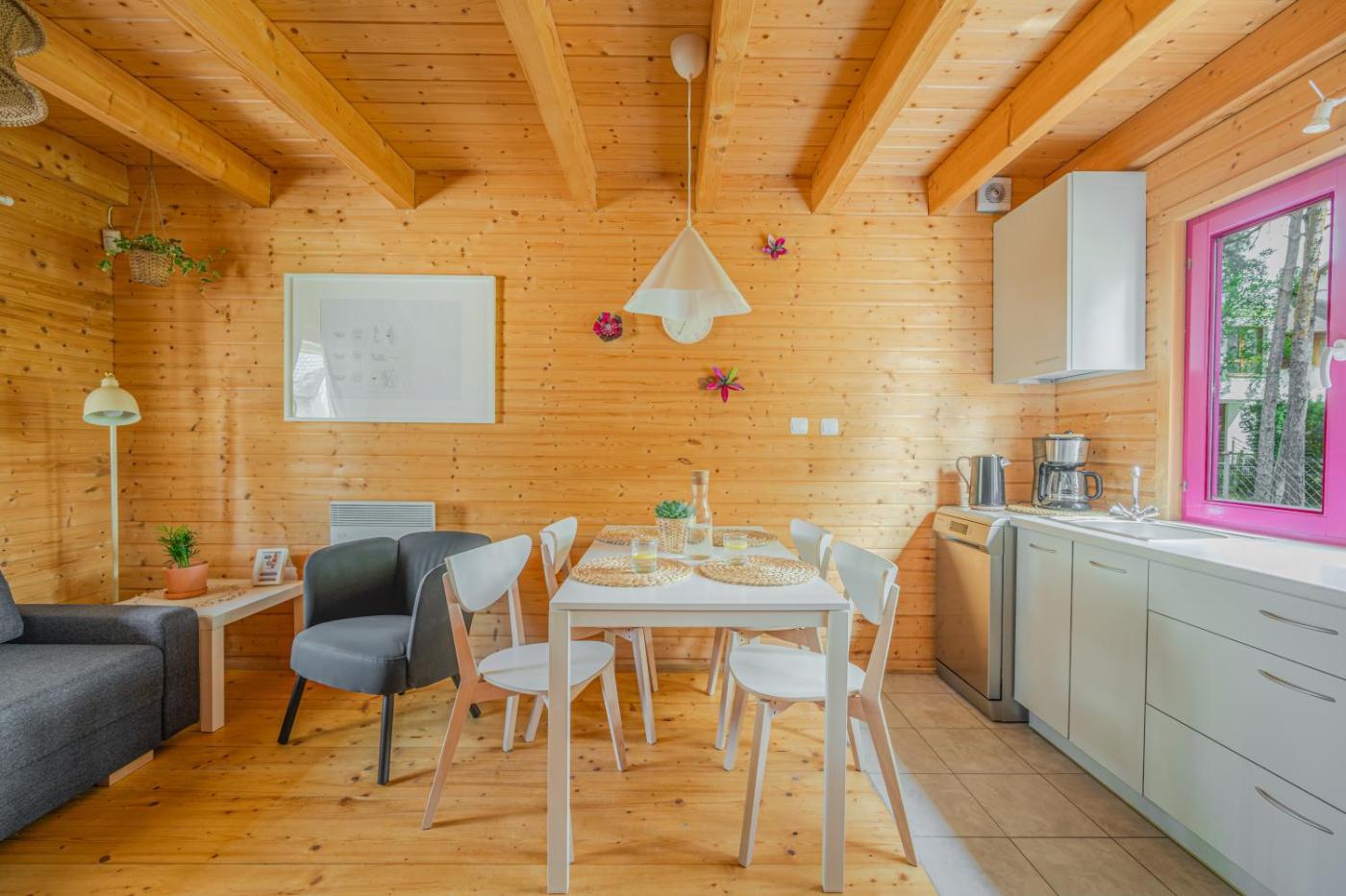 Bungalow Rodzinny. Guests will find a stovetop, a refrigerator, a dishwasher and kitchenware in the fully equipped kitchenette. The family room also offers a barbecue. The spacious family room provides a private entrance, a tea and coffee maker, a terrace with garden views as well as a private bathroom featuring a shower. The unit offers 5 beds. Rodzinny - 7 osobowy. Powierzchnia pokoju ok.: 55 mkw.